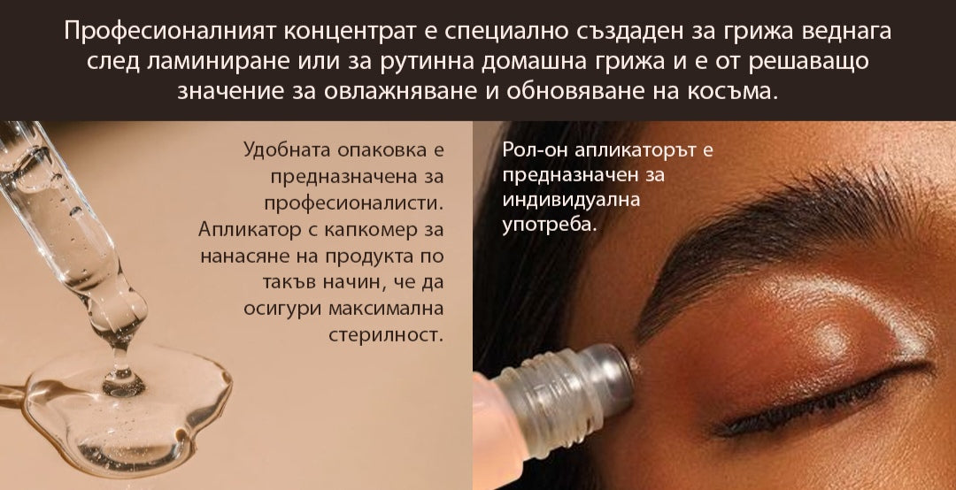 Защита, хидратация и ежедневна грижа за веждите. Разбирането на структурата на космите на веждите ви помага да оцените ролята на маслата в професионалната грижа. Космите на веждите, както и космите на главата ви, се състоят основно от кератин - протеин, който създава постоянни връзки (включително дисулфидни мостове), които придават на косъма неговата форма и еластичност. По време на ламинирането се използват химически препарати (напр. на базата на тиогликолова киселина или цистеамин), които временно разкъсват връзките в косъма, позволявайки му да промени позицията си. След това връзките се фиксират отново в новата си форма. Този процес, въпреки че се извършва внимателно, може да причини загуба на част от естествената влага и липиди в косата, както и в кожата под веждите. В резултат на това, без допълнителна грижа, веждите след лечението могат да станат по-чупливи, матови или груби на допир. Целта на маслото, нанесено след ламиниране, е да попълни загубата на влага и липиди в косъма и да затвори кутикулите на косъма, за да предотврати по-нататъшна загуба на влага. Маслото има и успокояващ ефект върху кожата – облекчава всяко раздразнение и я предпазва от изсушаване или лющене.
