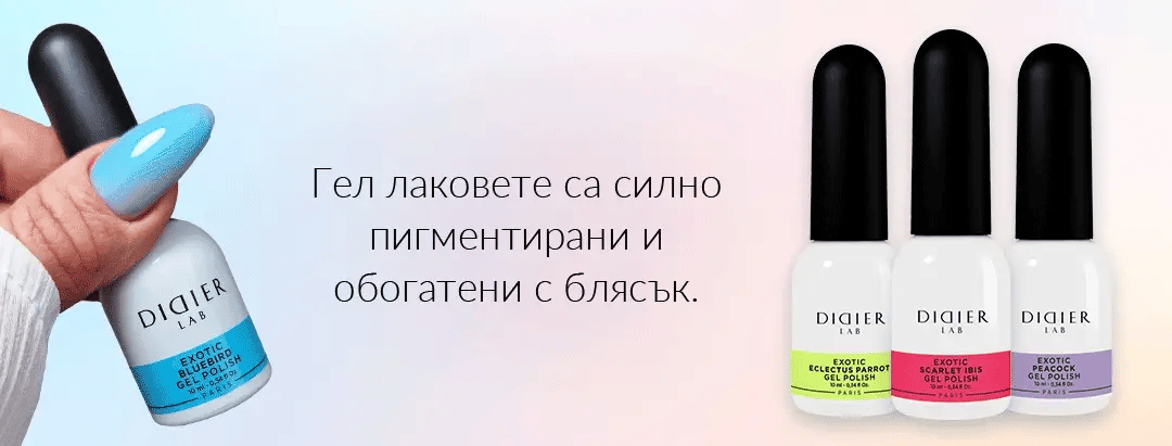 • Силно пигментирани гел лакове в екзотични нюанси, които могат да се използват за пълно покритие на ноктите и различни опции за декорация. Тази линия е много гъвкава - от класически до артистичен.