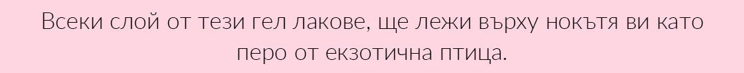 • Всеки слой от този лак ще лежи върху нокътя като перо на екзотична птица. Можете използвате един цвят или смесете няколко любими нюанси заедно, за да създадат различна декорация.