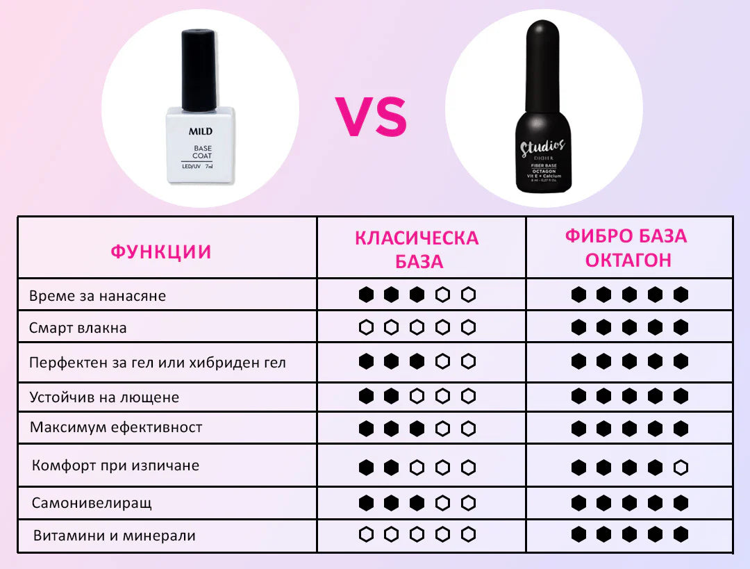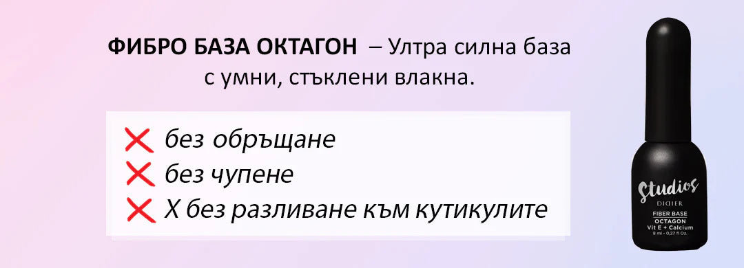 Формулата на базовото покритие на Стидио Didier "Октагон" е обогатена с витамин Е и калций. Липсата на тези витамини отслабва и изтънява ноктите ни. Ноктите се чупят и напукват, а ако са покрити с гел лак, очакванията не се оправдават.