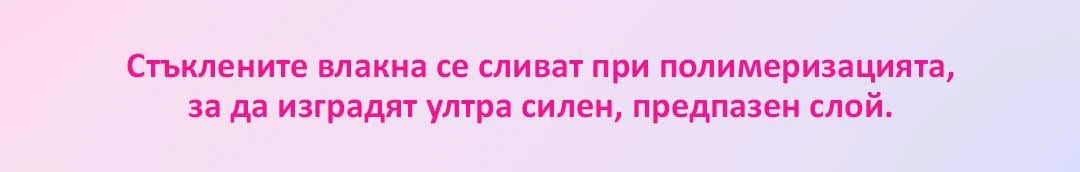 Слоят, който съдържа частици от фибростъкло, образува здрава и гъвкава връзка и изпълнява основната си функция за укрепване на ноктите. Маникюрът издържа по-дълго, защото частиците фибростъкло, които се комбинират по време на полимеризацията, образуват изключително стабилна и здрава основа за гел лак.